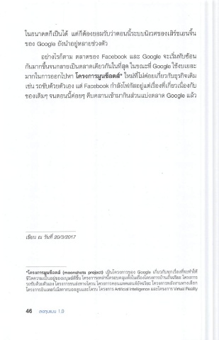 'โครงการมูนข็อคส์ (moonshots project) เป็นโครงการของ Google เกยวกับทุกเร ๆให้