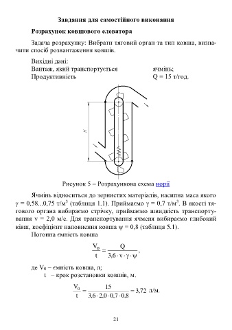 Задача розрахунку: Вибрати тяговий орган та тип ковша, визна-