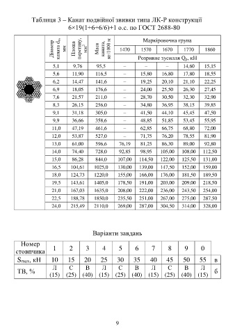Таблиця 3 – Канат подвійної звивки типа ЛК-Р конструкції