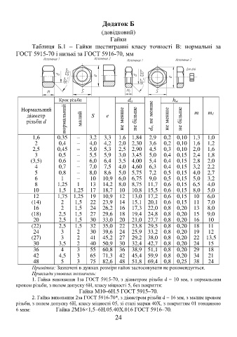 Таблиця Б.1 – Гайки шестигранні класу точності В: нормальні за