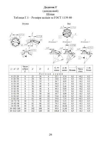Додаток Г (довідковий) Шліци Таблиця Г.1 – Розміри шліців за ГОСТ 1139-80 29