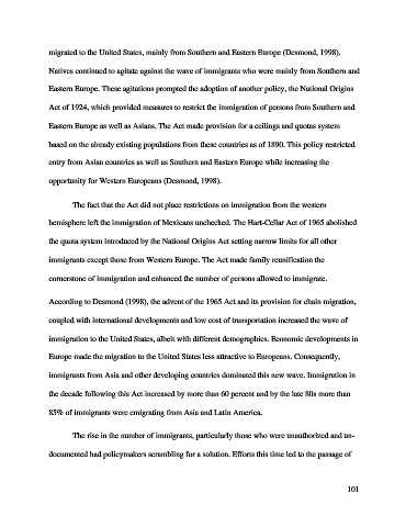 migrated to the United States, mainly from Southern and Eastern Europe (Desmond, 1998).