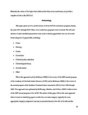 of the Academy of Criminal Justice Sciences (ACJS) and by Robinson (2004) in his review of