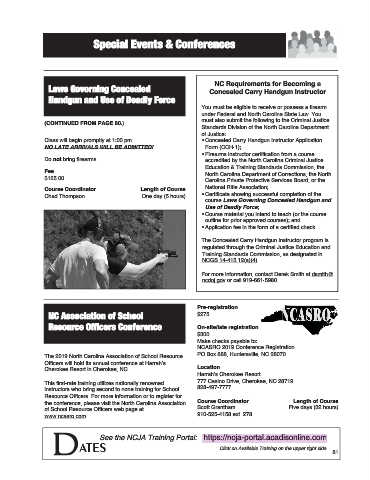 Do not bring fi rearms. accredited by the North Carolina Criminal Justice