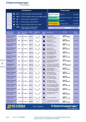 Nadel-Faden- Stärke /Nr. Länge Nadel Nadelform Nadel- Indikationen Art.-Nr. Preis