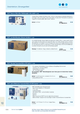 506 Dental-Union Labor Alle Preise in diesem Katalog verstehen sich als unverbindliche Preisempfehlung der Mehrzweck Papierwischtüchern. Die Tork Reflex TM Starken Mehrzweck Papierwischtücher sind 37% ergiebiger als herkömmliche Innenabrollungen.