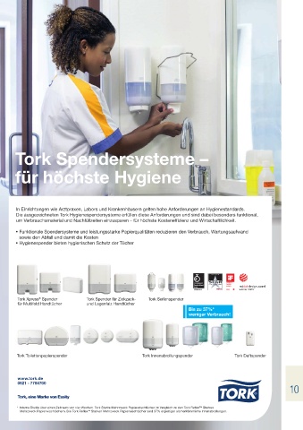 • Funktionale Spendersysteme und leistungsstarke Papierqualitäten reduzieren den Verbrauch, Wartungsaufwand
