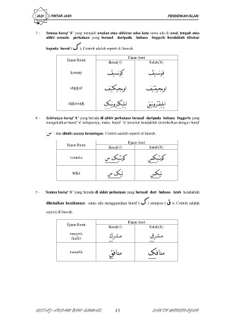 3 - Semua huruf ‘k’ yang menjadi awalan atau akhiran suku kata sama ada di awal, tengah atau