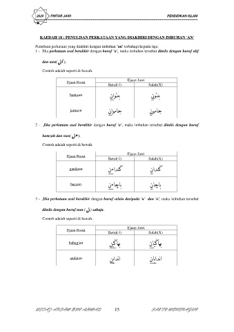 KAEDAH 18 : PENULISAN PERKATAAN YANG DIAKHIRI DENGAN IMBUHAN 'AN'