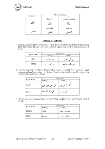 nama-nama huruf dalam abjad rumi dengan tulisan jawi dan diletak tanda titik selepas setiap