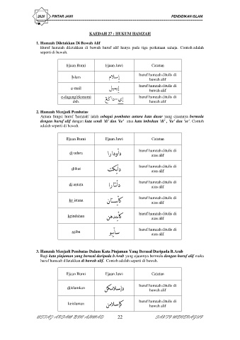 huruf hamzah diletakkan di bawah alif. Contoh adalah seperti di bawah.