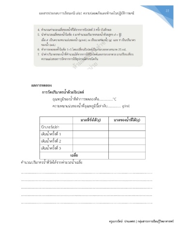 ความหนาแน่นของน้ำที่อุณหภูมินี้เท่ากับ................ g/ml