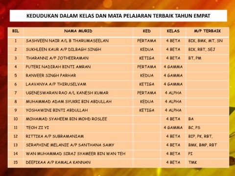 KEDUDUKAN DALAM KELAS DAN MATA PELAJARAN TERBAIK TAHUN EMPAT