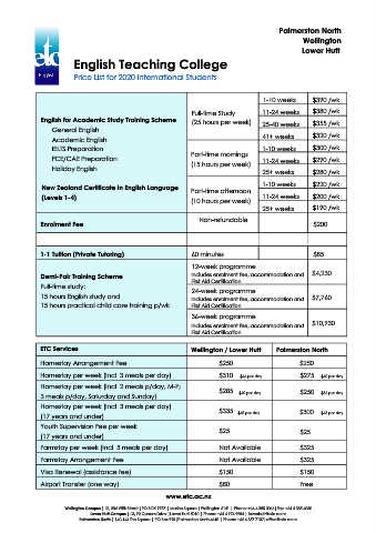 Price List for 2020 International Students