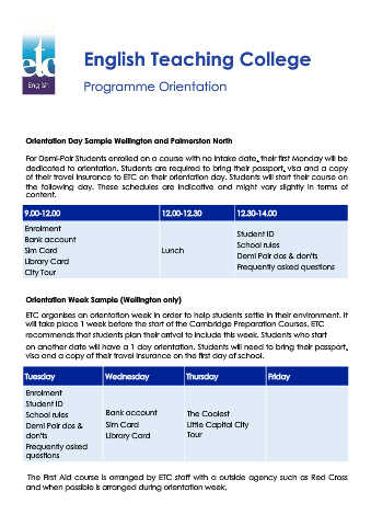 will take place 1 week before the start of the Cambridge Preparation Courses. ETC
