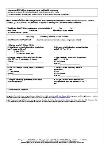 Accommodation Arrangement Note: Homestay accommodation is vetted and approved by ETC. Students