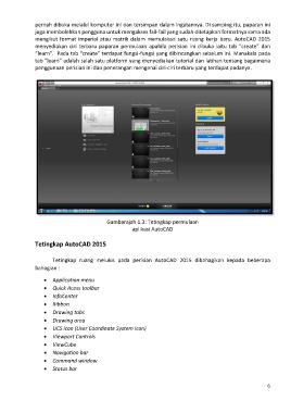 Tetingkap ruang melukis pada perisian AutoCAD 2015 dibahagikan kepada beberapa