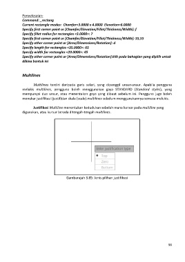 menukar justifikasi (justif)dan skala (scale) multilines sebelum menggunakannya semasa melukis.