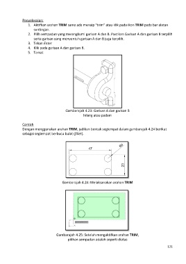 Dengan menggunakan arahan TRIM, jadikan bentuk segiempat dalam gambarajah 4.24 berikut