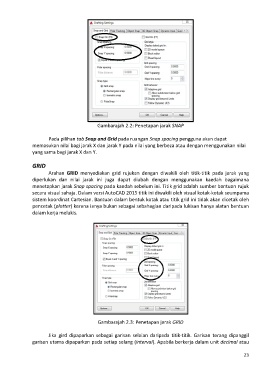 Pada pilihan tab Snap and Grid pada ruangan Snap spacing pengguna akan dapat