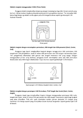 kedua bagi lengkung adalah sambungkan pada titik tengah bulatan seperti gambarajah 3.28