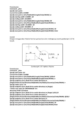 Dengan menggunakan Polyline hasilkan garisan lurus dan melengkung seperti gambarajah 3.37 di