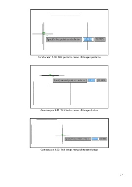 Gambarajah 3.48: Titik pertama mewakili tangen pertama Gambarajah 3.49: Titik kedua mewakili tangen kedua Gambarajah 3.50: Titik ketiga mewakili tangen ketiga 77