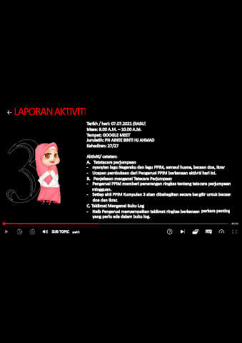 - nyanyian lagu Negaraku dan lagu PPIM, asmaul husna, bacaan doa, ikrar