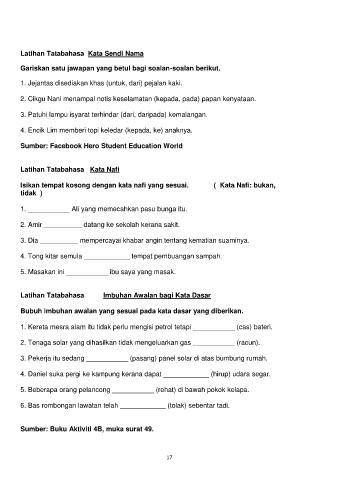 Latihan Tatabahasa Imbuhan Awalan bagi Kata Dasar
