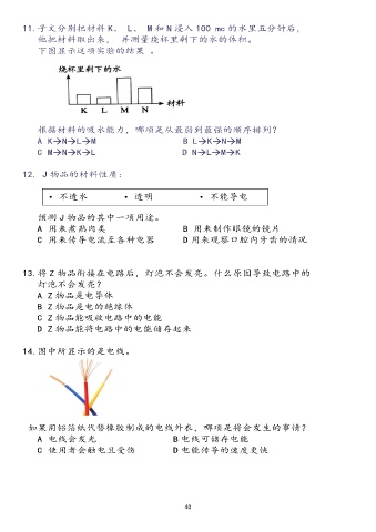 11.子文分别把材料 K、 L、 M 和 N 浸入 100 mc 的水里五分钟后,
