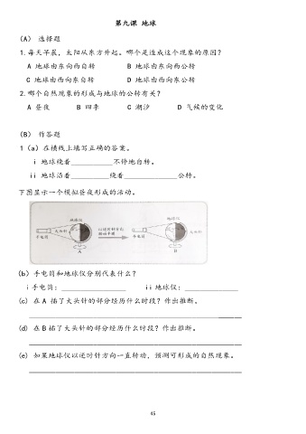 (e) 如果地球仪以逆时针方向一直转动,预测可形成的自然现象。