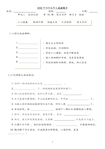 单元二 生活之旅 第 10 课: 宽大为怀 练习 2 成语