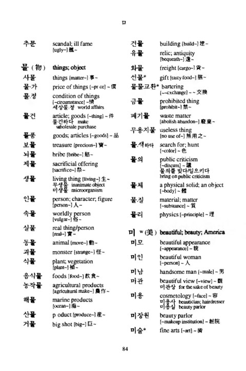 물 ( 物 ) things; object 화물 freight [cargo니貨-