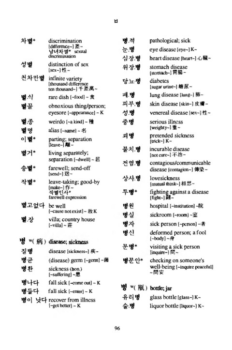 병균 (disease) g e r m [-germ] -홉 병문안* c h e c k i n g o n s o m e o n e ' s
