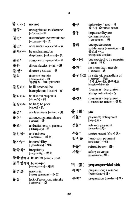 불효* undutifulness to parents 선불* a d v a n c e p a y m e n t