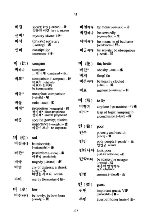 비 하다      c o m p a r e              비 만*      obesity [-full] - 滿