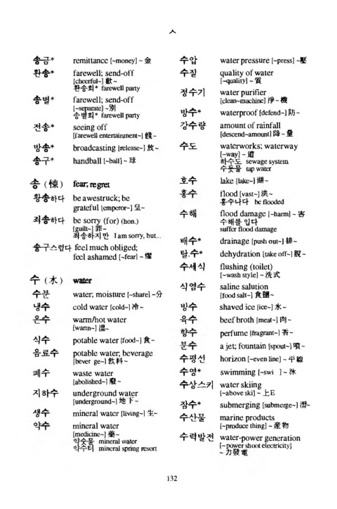 o   ᄆ    remittance [-money] - 金    수압        water pressure [‘press] -壓