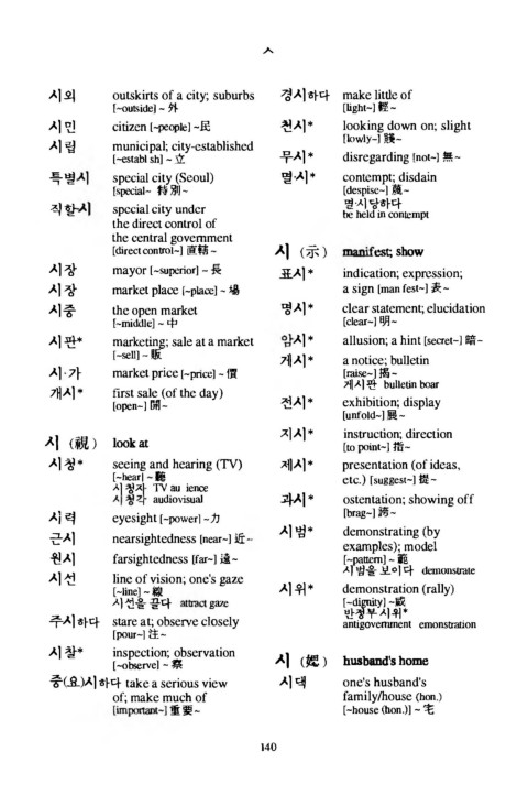 시판* marketing; sale at a m a r k e t 시 * allusion; a hint [secret-] 暗~