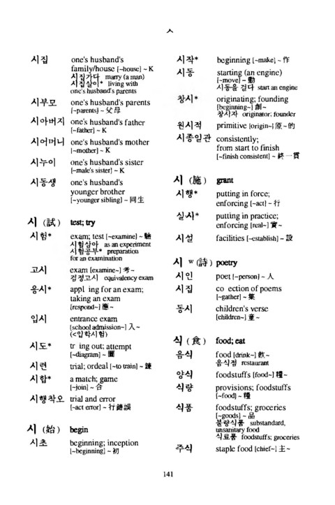 시 아버 지 one's husband's father 원시적 primitive (origin-] 原 - 的