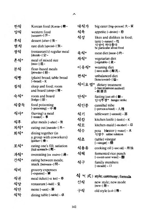 K o r e a n f ood [Kaea-] 韓 ~ 대식가 big eater [big~person] 大 - 家