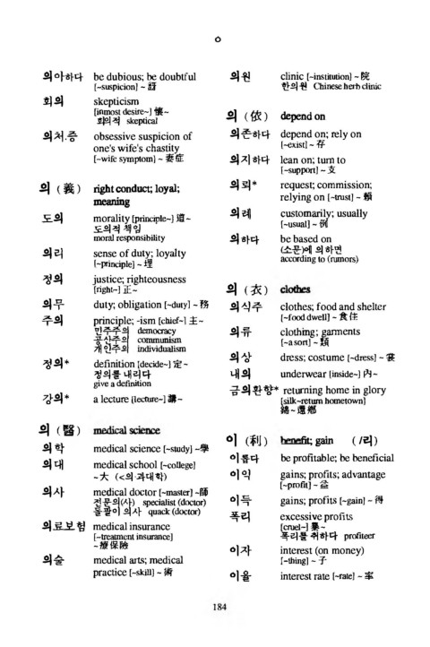 의 아하다 b e d u b io u s ; be d o u b tfu l 의원 c lin ic [-institution] - 院