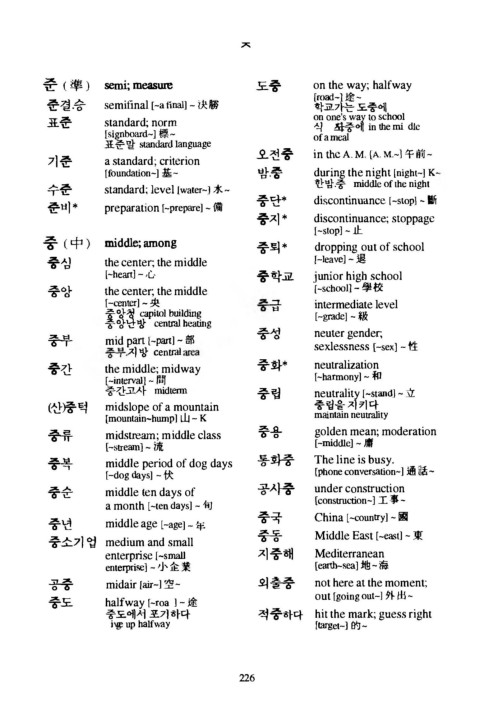 준 ( 準 ) seID1; m 娜 ure 도중 o n the w a y ; h a l f w a y