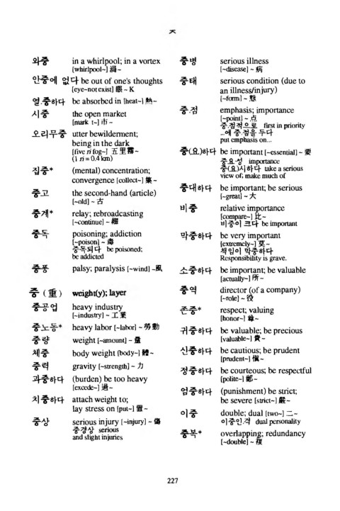 풍 palsy; paralysis [-wind] -風 소중하다 b e important; b e valuable