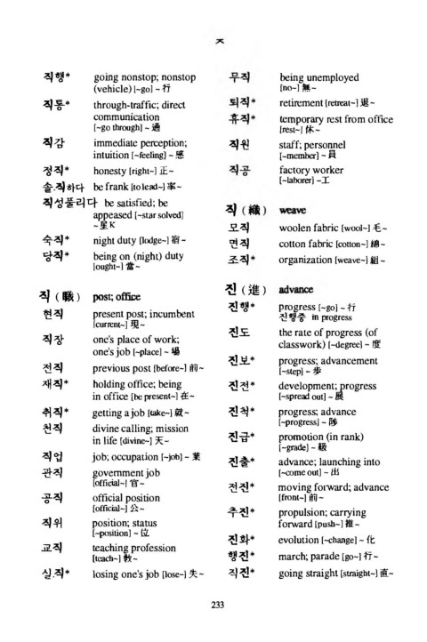 실직* losing one's j ob [lose-] 失 ~ 직진* g o i n g straight [straight니直~