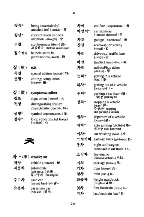집 착* b e i n g (excessively) 차비 car fare [-expenditure] - 费