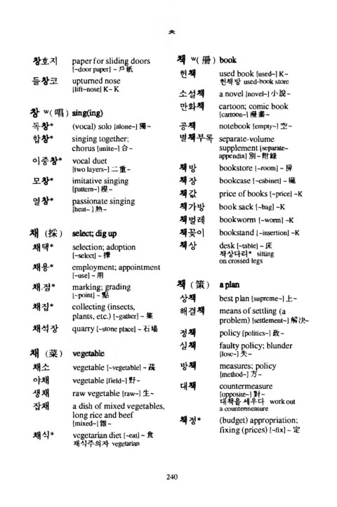 채 (採 ) 벼g u p 책꽂이 b o o k sto n d [-insertion] - K