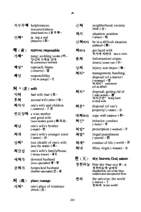 상처* loss (death) o f one's w i f e 처세* c o n d u c t o f life [-world] - 世
