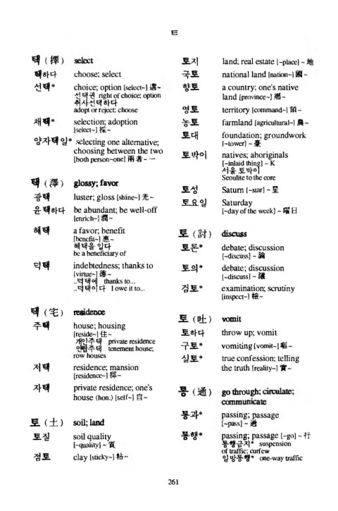 택하다 choose; select 국토 national l a n d [nati어H 國 ~