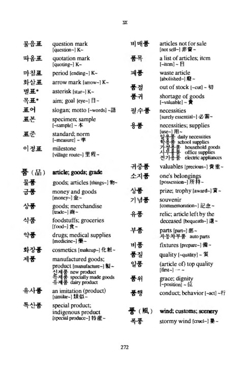유 사 품 a n imitation (product) 품행 conduct; b e h a v i o r [ ‘act] -行