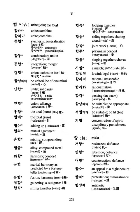 연합 * union; alliance 합당하다 b e suitable; b e appropriate